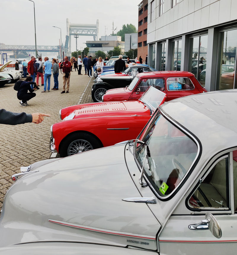 Na de lunch en geanimeerde gesprekken op het terras en bij de auto's wilden de deelnemers maar één ding: rijden! Uiteindelijk werd weer gestart. Niet op volgorde maar wel om de minuut. "Je wilt proberen dat iedereen zoveel mogelijk zijn eigen ding kan doen onderweg", aldus de organisatie. Dan helpt het uitstekend als binnen 10 kilometer een brug open staat...